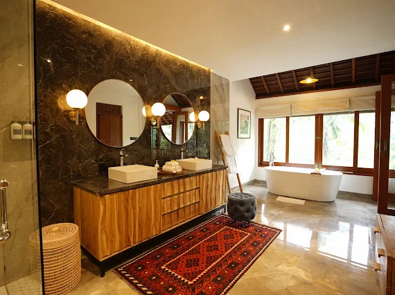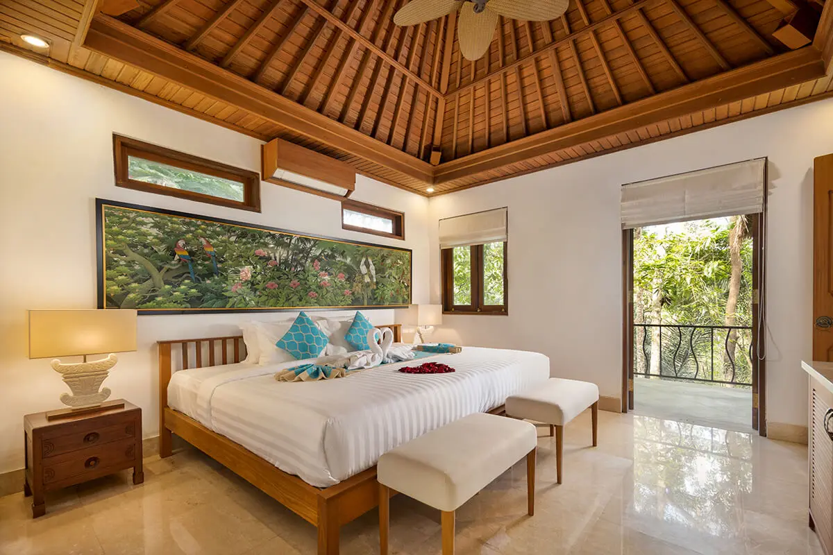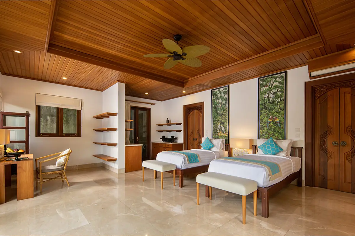 Our One Grand Deluxe Room (Bintang) is a refined sanctuary embraced by nature, designed for ultimate comfort and tranquillity. The room features a spacious bedroom with a king-size bed or Hollywood twin, an elegant open-plan living area, and a lavish bathroom with a bathtub and rain shower. Guests can also indulge in serene valley views, enhancing the sense of relaxation throughout the stay.